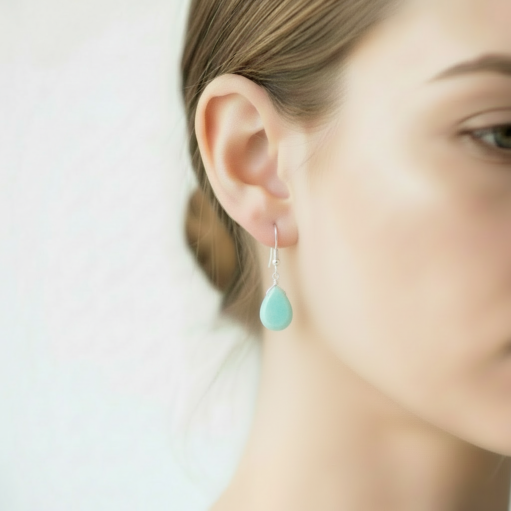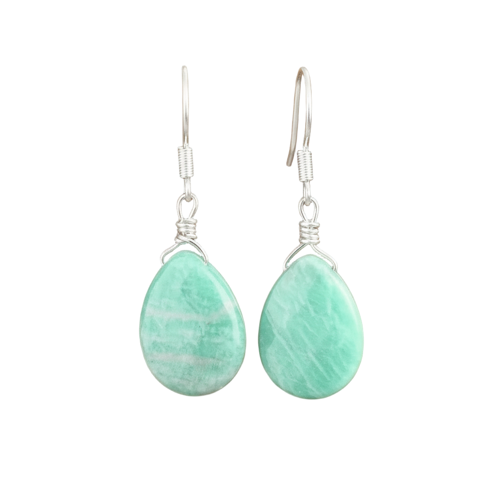Diese wunderschönen Edelstein-Ohrringe sind handgefertigt, aus Amazonit-Natursteinen.